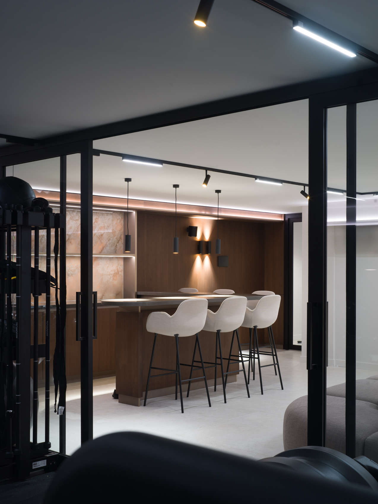 Op de begane grond bevindt zich de werkruimte, beneden een leisure-ruimte voor sport en ontmoeting. Rustige vloerafwerkingen, zacht licht en veel groen zorgen samen voor een oase van rust – midden in hartje Amsterdam.